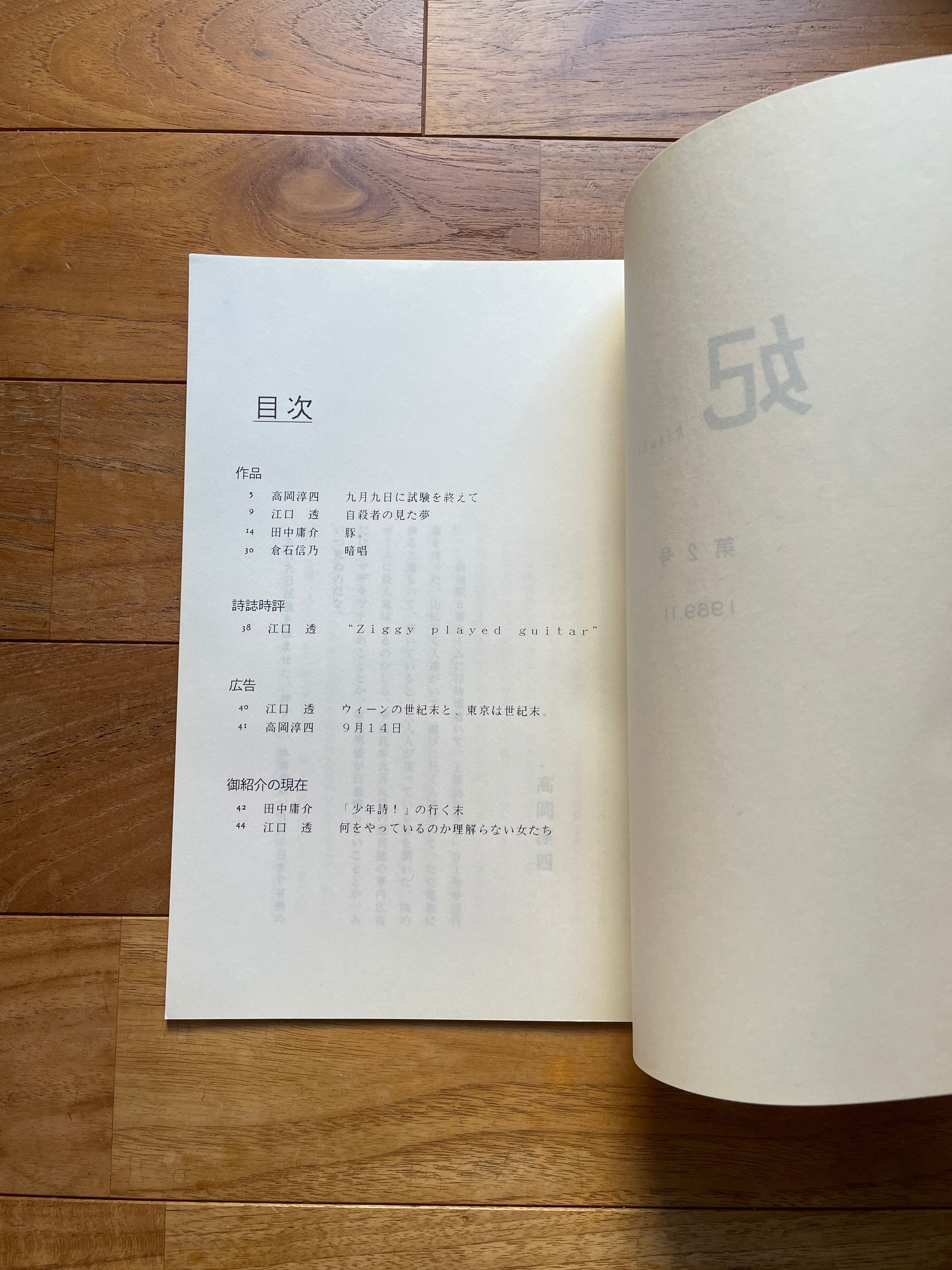 詩人・細胞生物学者の田中庸介の責任編集・発行により、1989年に創刊された同人詩誌です。